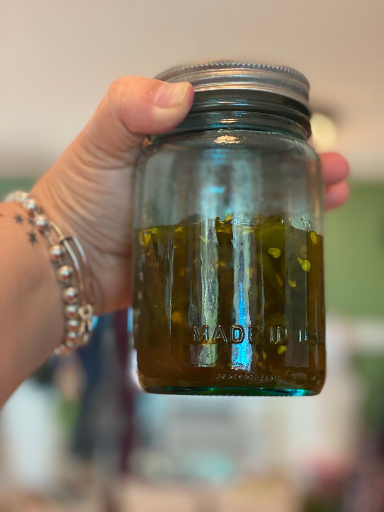Something about growing my own produce and then jarring and pickling them makes me feel so happy! It’s like the epitome of summer! I often times romanticize these events in my head. Like… almost always. I forget about the humidity and the mosquitoes and the kitchen clean up and the squad of “helpers” than slow the process down…Anyways- I recently made candied jalapeños for the 1st time. Oh. My. God. I can definitely say there will never be a time in my future that I don’t have a home made jar of them in the fridge. We’ve been putting them on veggie burgers, tacos, crackers with cream cheese, charcuterie boards, home made pizzas, salads etc.