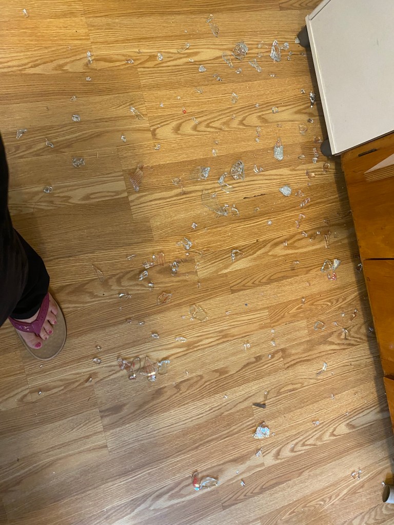 Sunday morning I had my usual line up of all the meal pre to do. And laundry. And prep for the school week. And kids. And all of Ron’s chores he had. Busy day ahead. I was twirling around the kitchen trying to make egg sandwiches for 6.5 people and start meal prep. When all of a sudden my baking dish caught the corner of my Pyrex measuring cups. My 4 cup measuring cup shattered to the ground. The glass. Went. Every where. It went up. It went to the living room. Fireball. Lavender was in her high chair waiting for her breakfast. The others were in the pool. My foot was bleeding from glass cuts. My hand was bleeding from the glass. What an epic disaster. It took me nearly an hour to clean this glass. I locked the girls outside. Naturally this was the worst part of their week. Obviously. 🙄