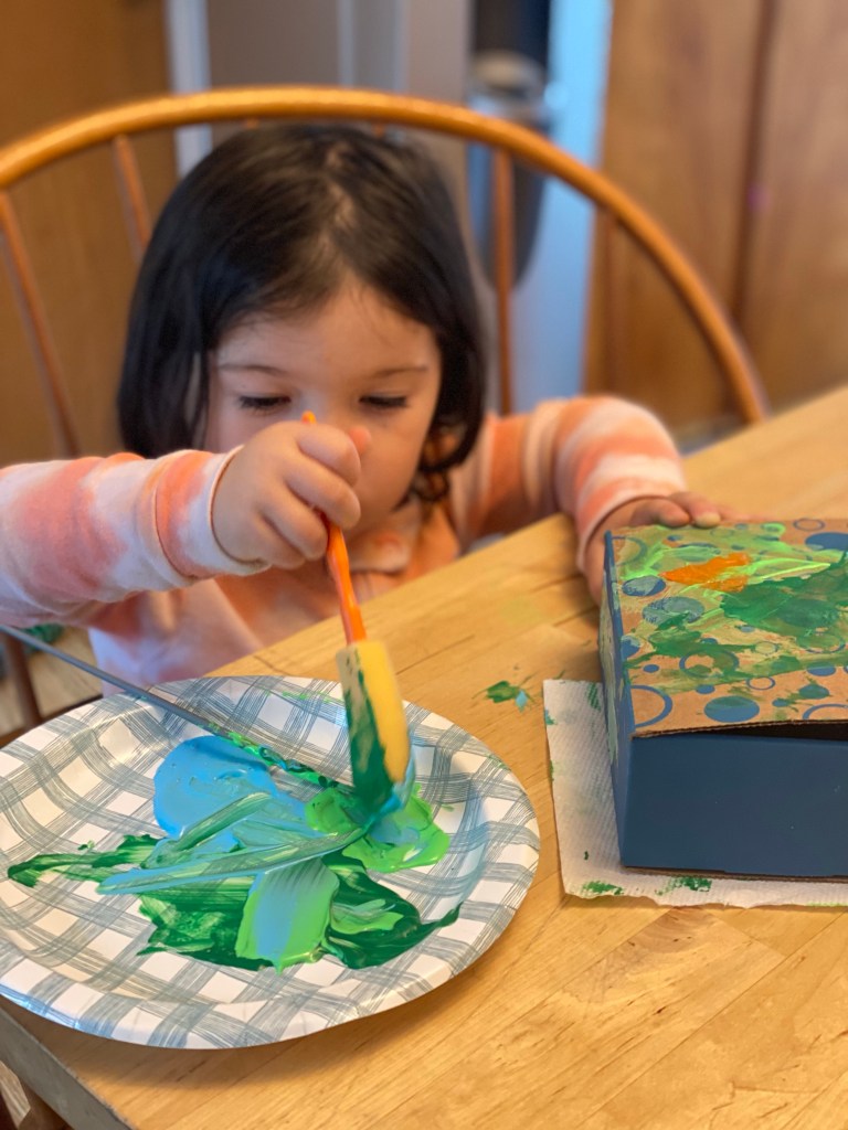 The girls love to paint. Especially juniper. This week I gave them each a small box and let them paint them. We pretended they were treasure boxes. They each painted one for a big sister! It was so sweet!