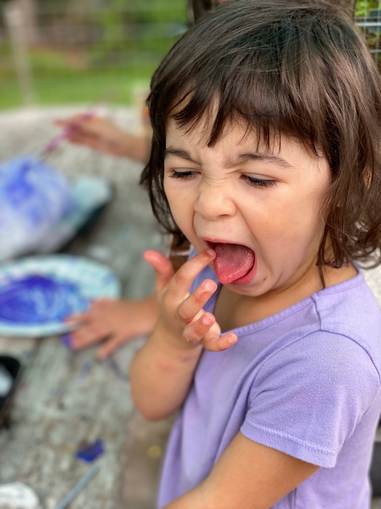 Pearl seeks sensory inputs in proprioceptive, vestibular and tactile areas. I myself am a bit of a sensory avoider. So it’s a weird match for us. She does all the things that I cringe at thinking about. Spinning on a swing? She’s all about it. I would throw up. Jumping and crashing? She’s craving it and wants to do it over and over and over. I’d rather walk barefoot in the snow than jump and crash like her. She loves messy play. I’m talking smearing things all over her body and immersing herself in all the gross things. I don’t even like getting my hands wet. (Don’t worry. I still wash my hands. But anything beyond a quick hand wash makes me cringe)