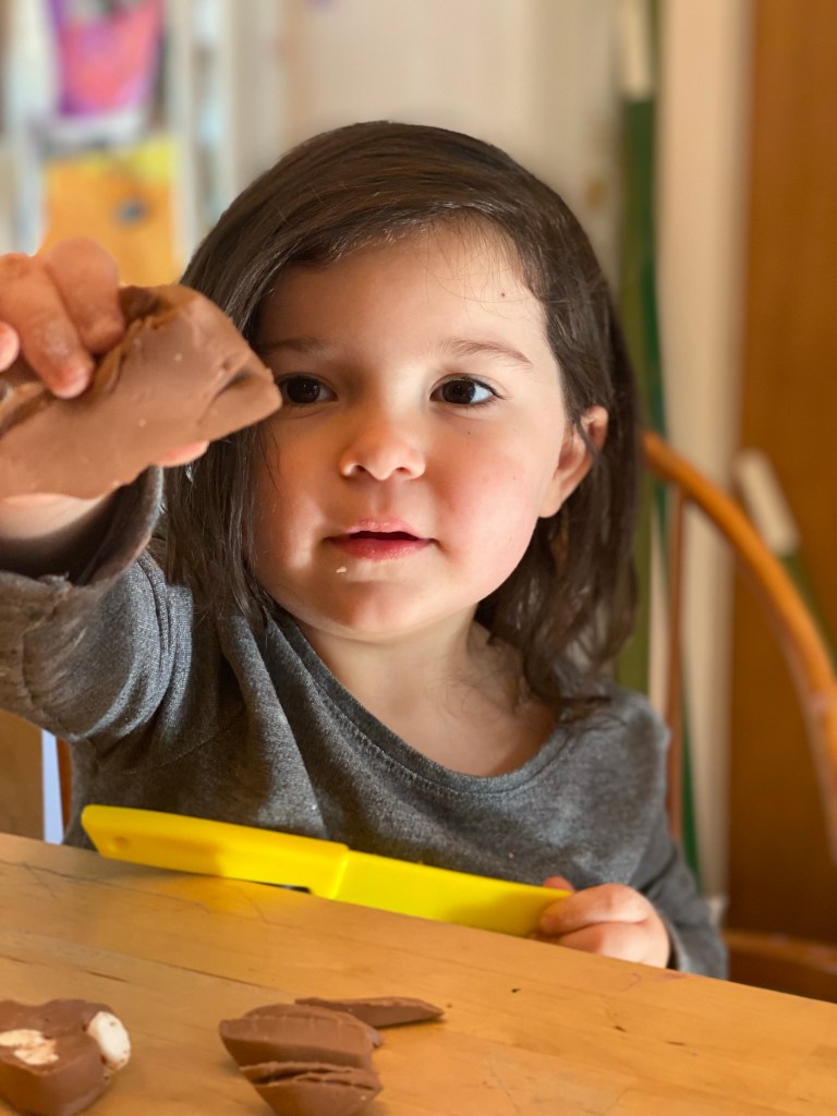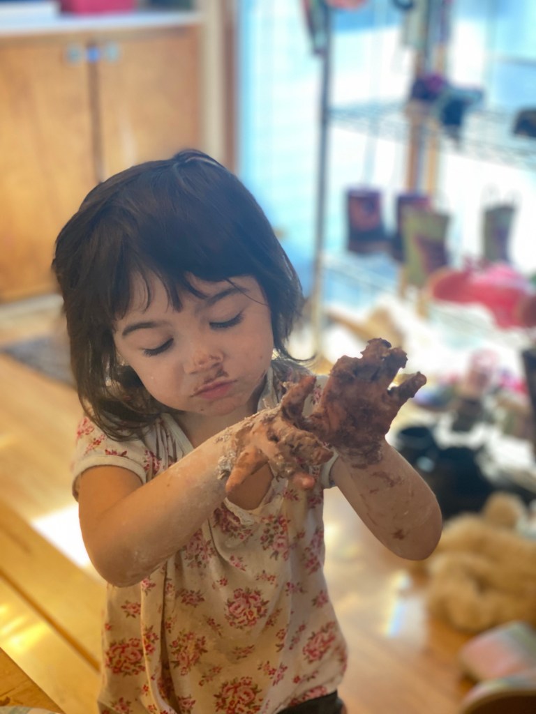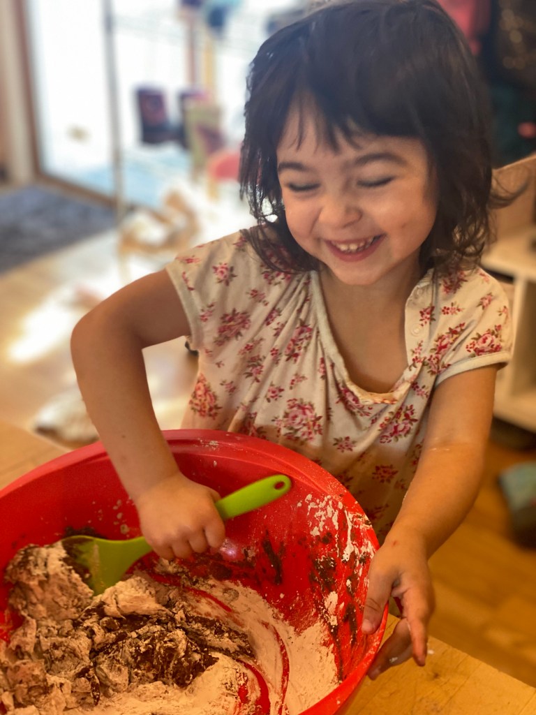 This experience was a hit for the ladybugs. I’ll definitely do it again! But next time I need to be more prepared to handle the sticky mess! I swear I was scrubbing chocolate dough from my own hands and arms for hours!